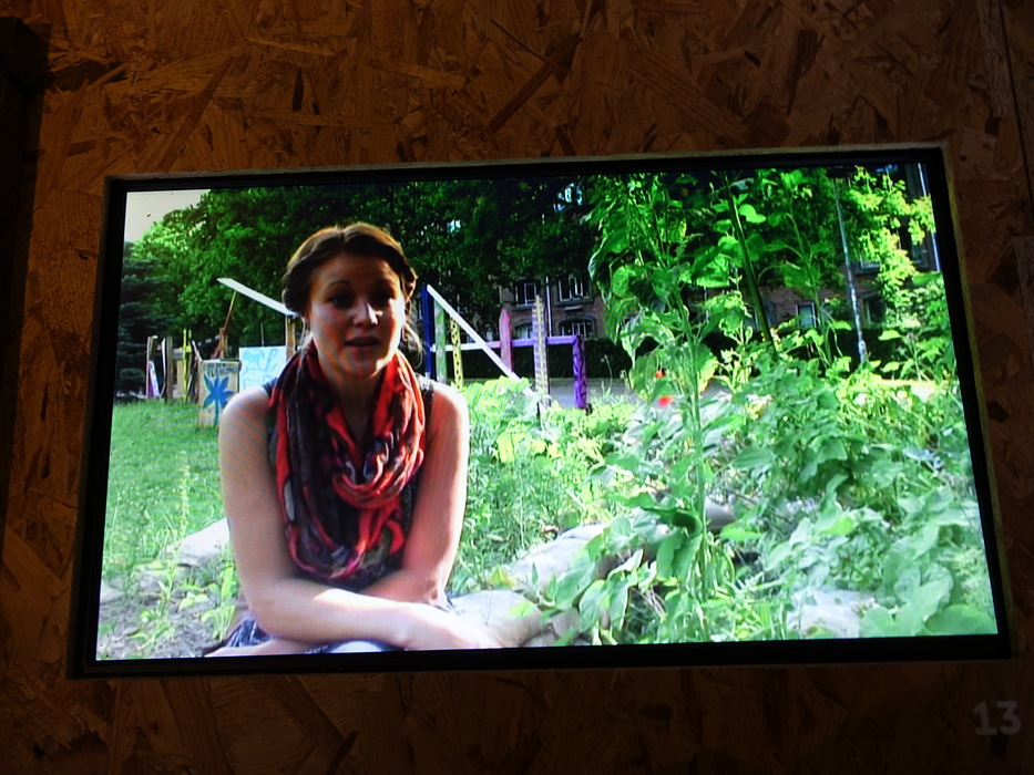 Можно надеть наушники и посмотреть фильмы, снятые в различных экологических хозяйствах. На многих экспонатах написаны координаты лидеров проекта. Поясняется, что совместное выращивание и приготовление еды — важный опыт для людей.