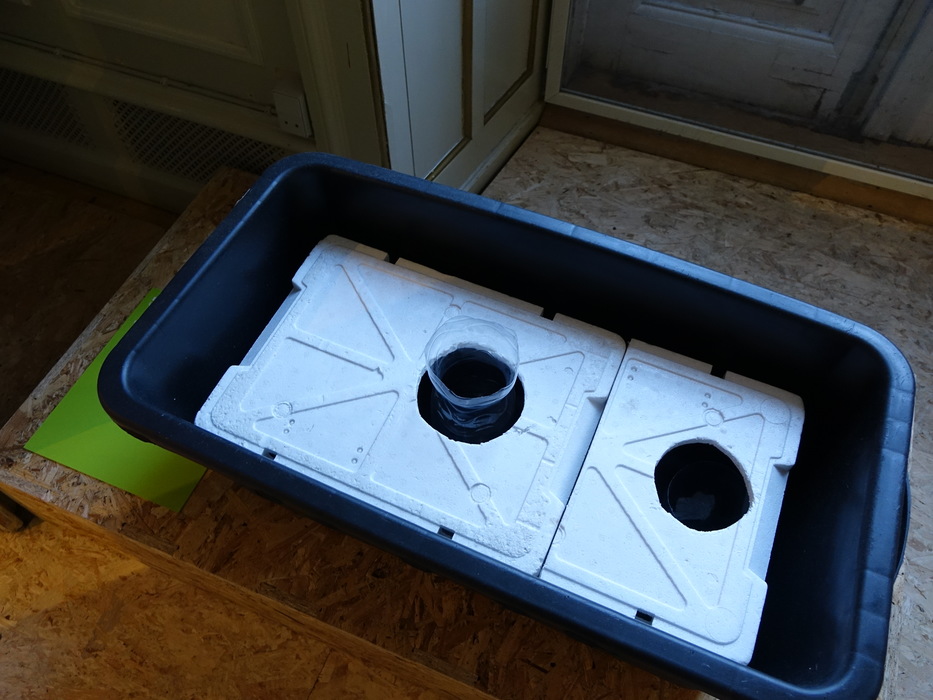 Самополивающийся контейнер для городского садоводства для мест, не имеющих прямого доступа к воде. На одном из экранов демонстрировался фильм о том, как сделать контейнер.