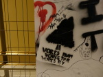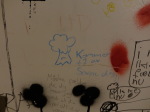 Рядом находится щит с граффити памяти каштана с Enghave Plads, срубленного во время строительства метро в 2011 году.
