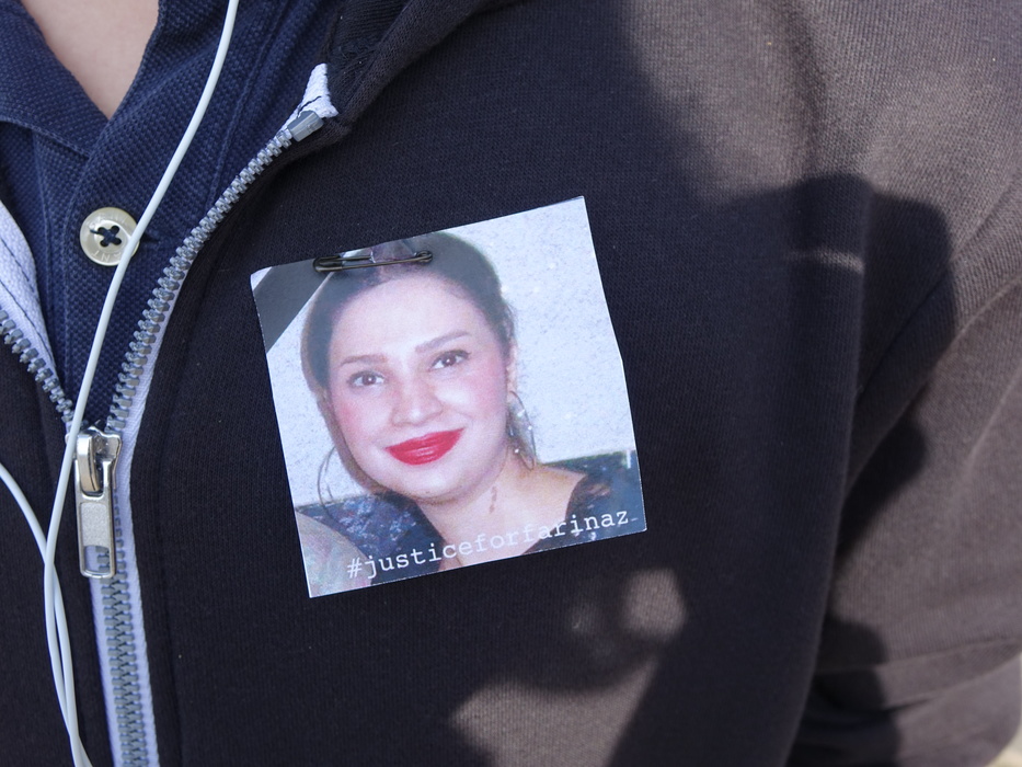 Поводом для всемирной акции против иранского режима стала гибель Farinaz Khosravani. Все участники бергенской акции прикрепили к одежде маленькие портреты Фариназ.