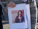 Люди держали курдские флаги и транспаранты «Мы протестуем против изнасилования», «Справедливости для Фариназ», «Мехабад не один», «Осудить и остановить казни в Иране», «Я Фариназ».