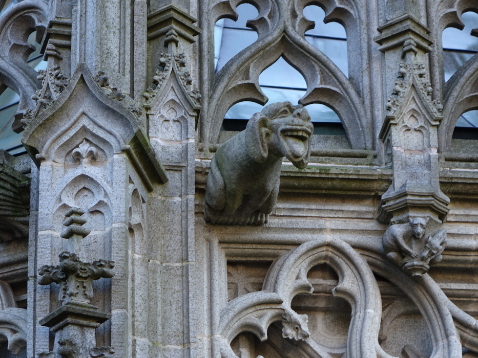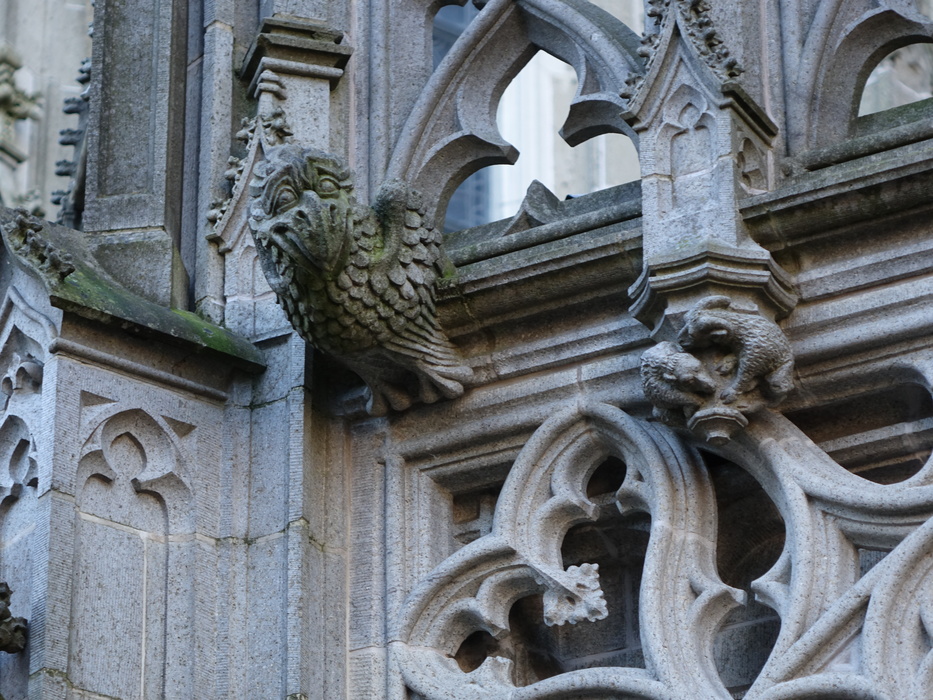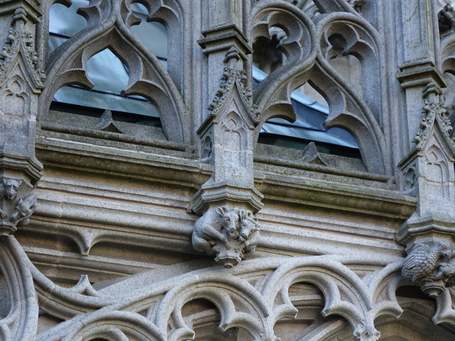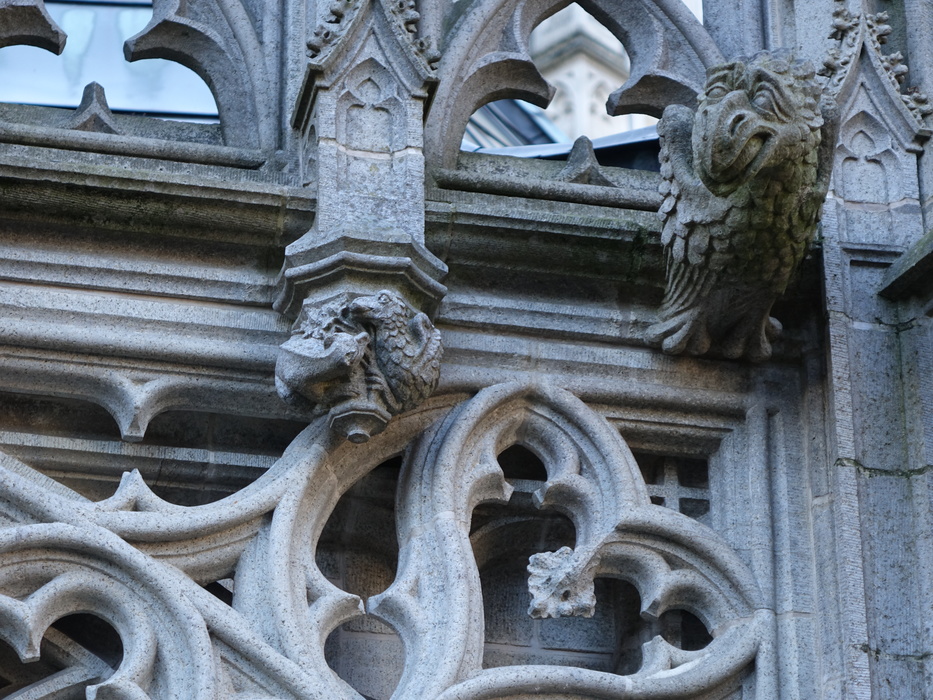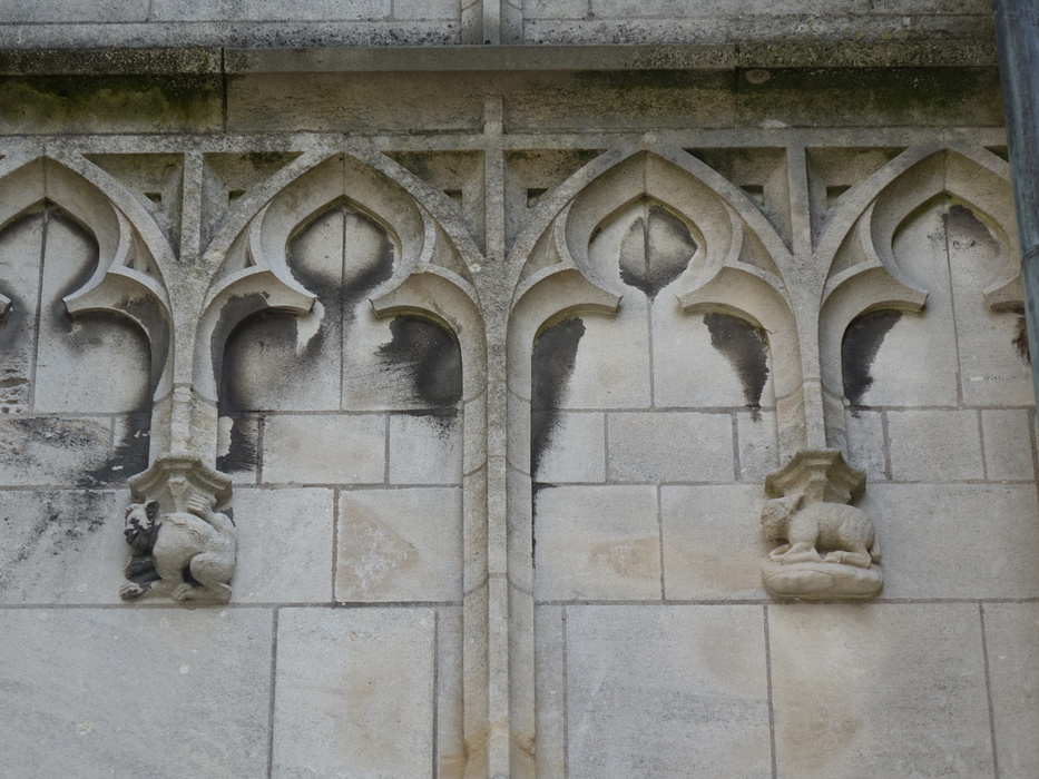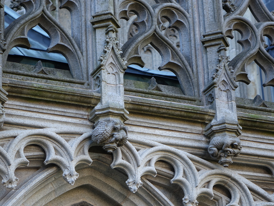 Всемирно известны фигурки на аркбутанах, каменных наружных полуарках. Строители, кузнецы, драконы, обезьяны, собаки, львы, медведи, свиньи, орлы, музыканты, художники, шуты, герои библейских сюжетов, монстры и пеликаны, кормящие птенцов собственной плотью — всего 96 фигурок помогали душам верующих возноситься в рай, отвлекая демонов.