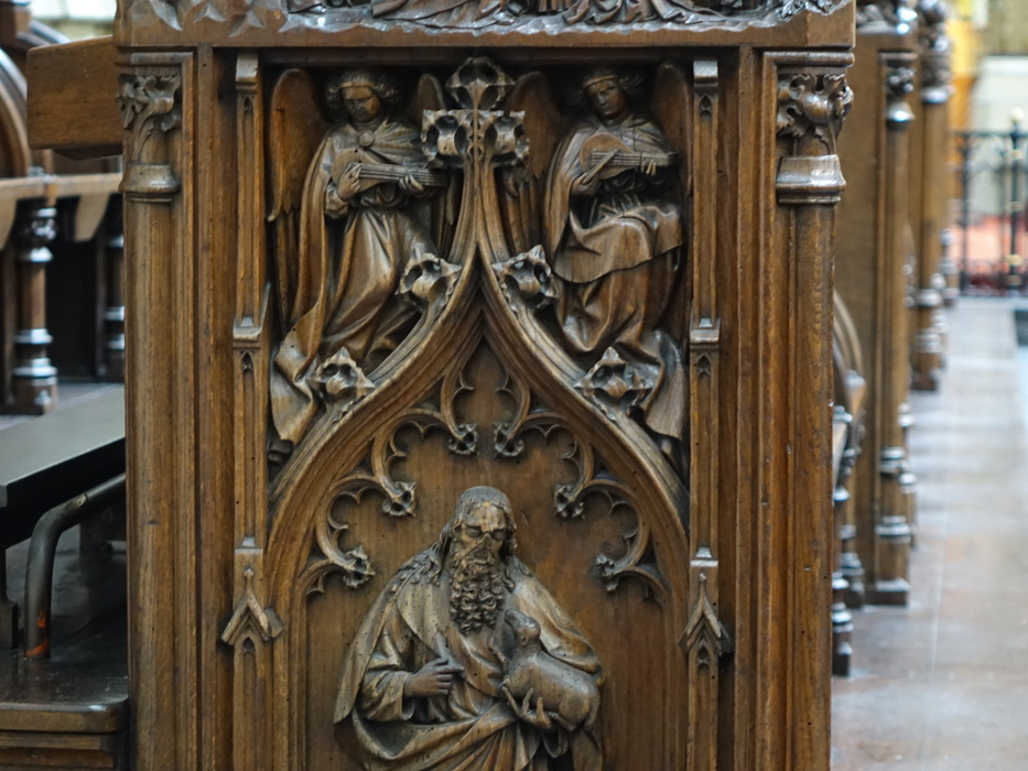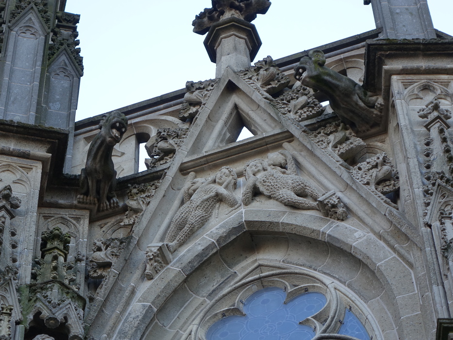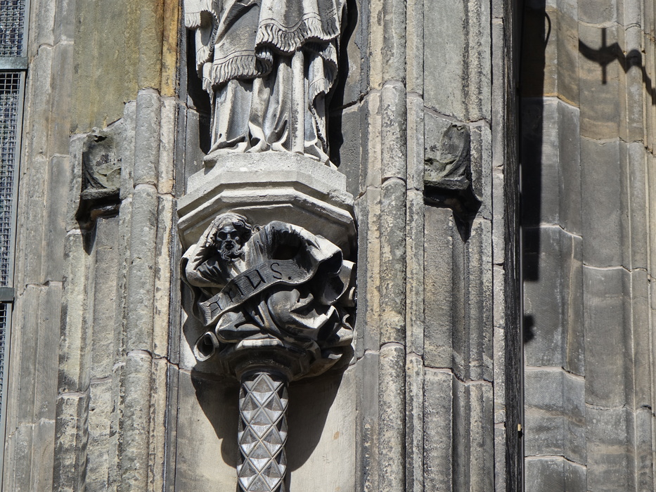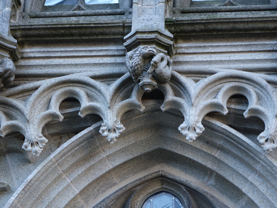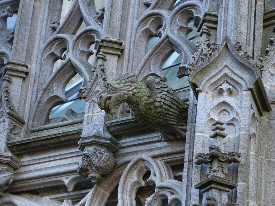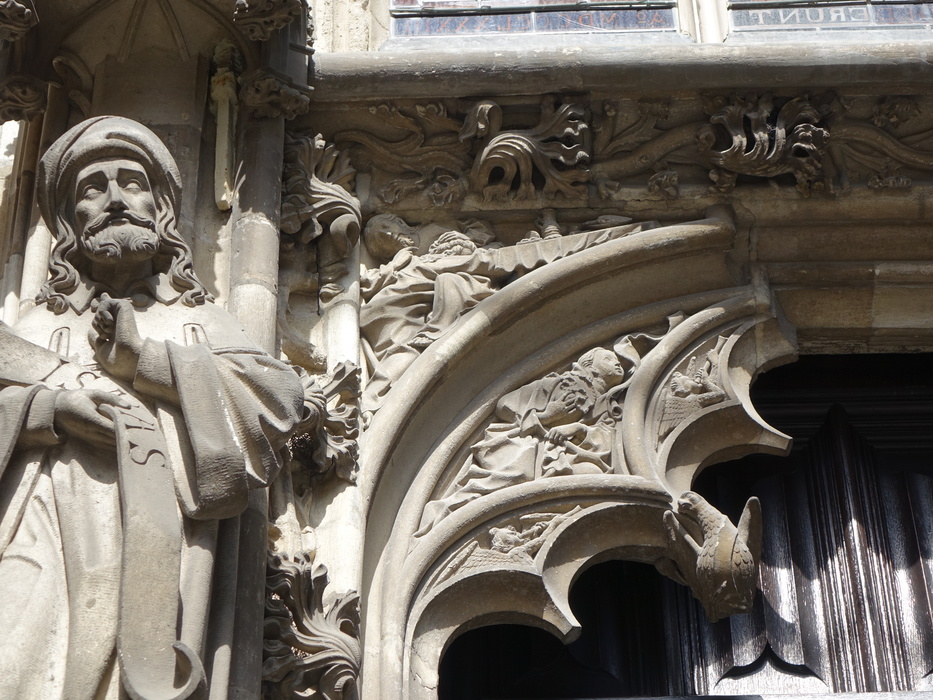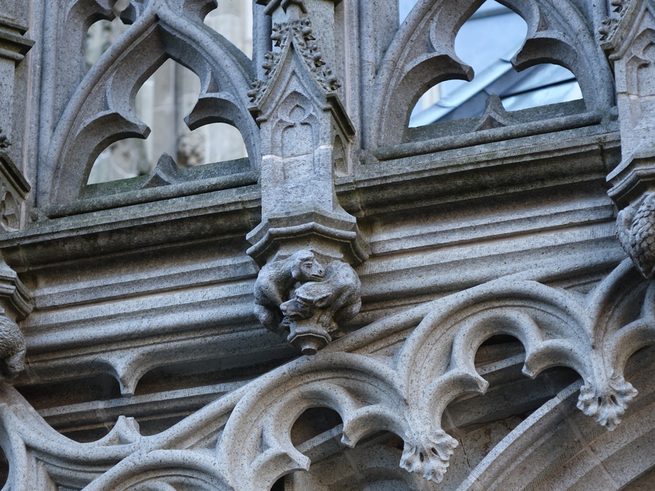 Всемирно известны фигурки на аркбутанах, каменных наружных полуарках. Строители, кузнецы, драконы, обезьяны, собаки, львы, медведи, свиньи, орлы, музыканты, художники, шуты, герои библейских сюжетов, монстры и пеликаны, кормящие птенцов собственной плотью — всего 96 фигурок помогали душам верующих возноситься в рай, отвлекая демонов.