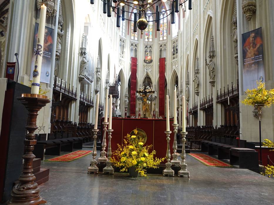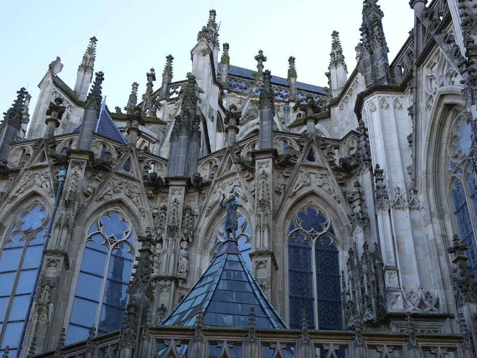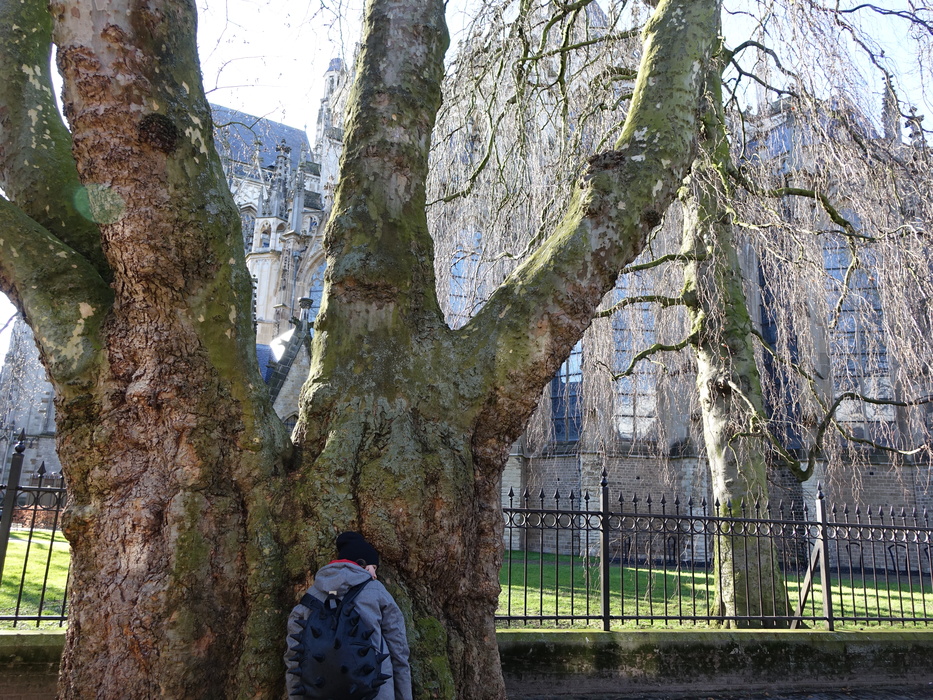 Живописные деревья, которым много сотен лет, окружают собор. Кажется, что из черного дупла за прохожими смотрит сова с эскиза, иллюстрирующего нидерландскую поговорку: «Поле имеет глаза, а лес — уши, и я услышу, если буду молчать и слушать».