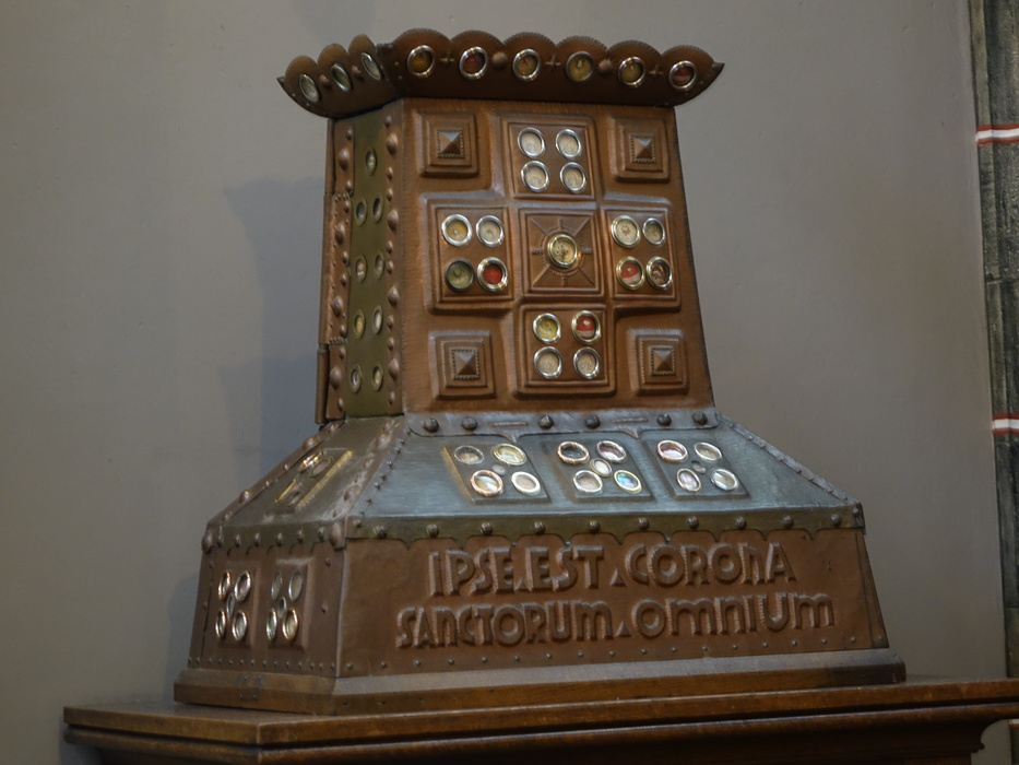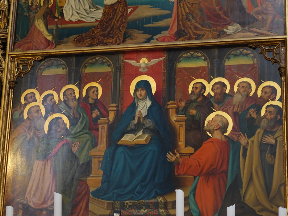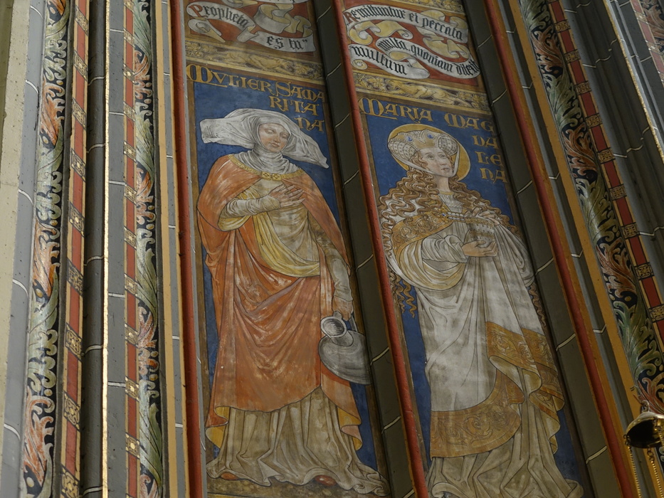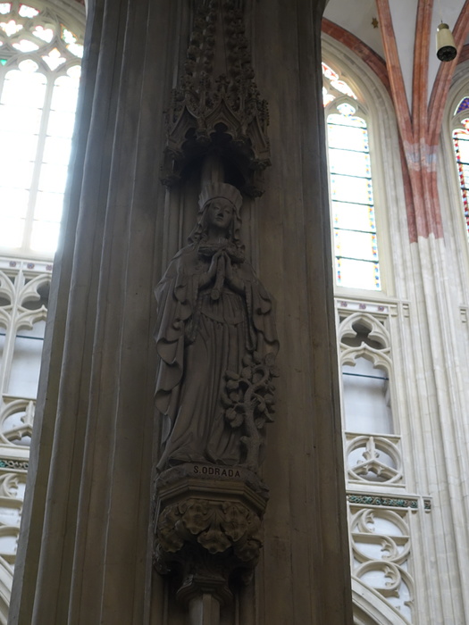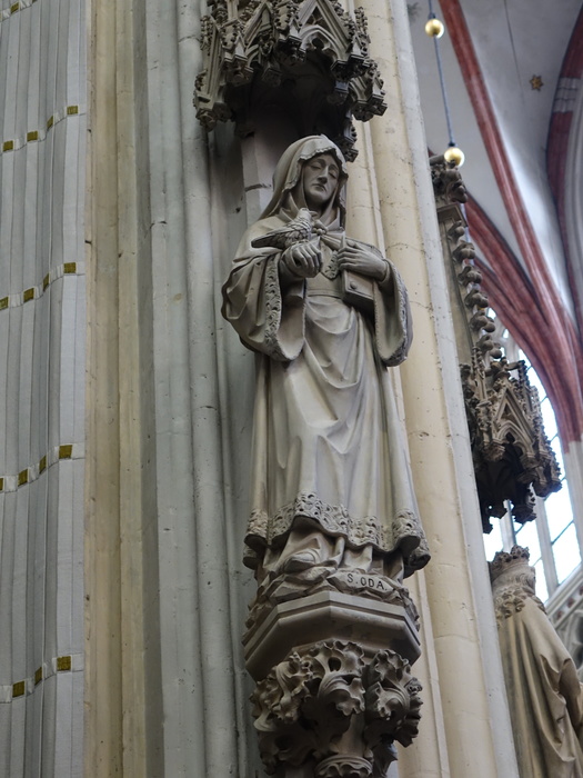 а также ряд статуй, изображающих женщин-святых. Урсула, Марта, Мария Египетская, Изабелла, Одрада Баэленская, Валерия, Вероника, Матильда, Ода, Доротея и другие святые держат в руках символические предметы из собственных жизнеописаний. Урсула стоит со стрелой.