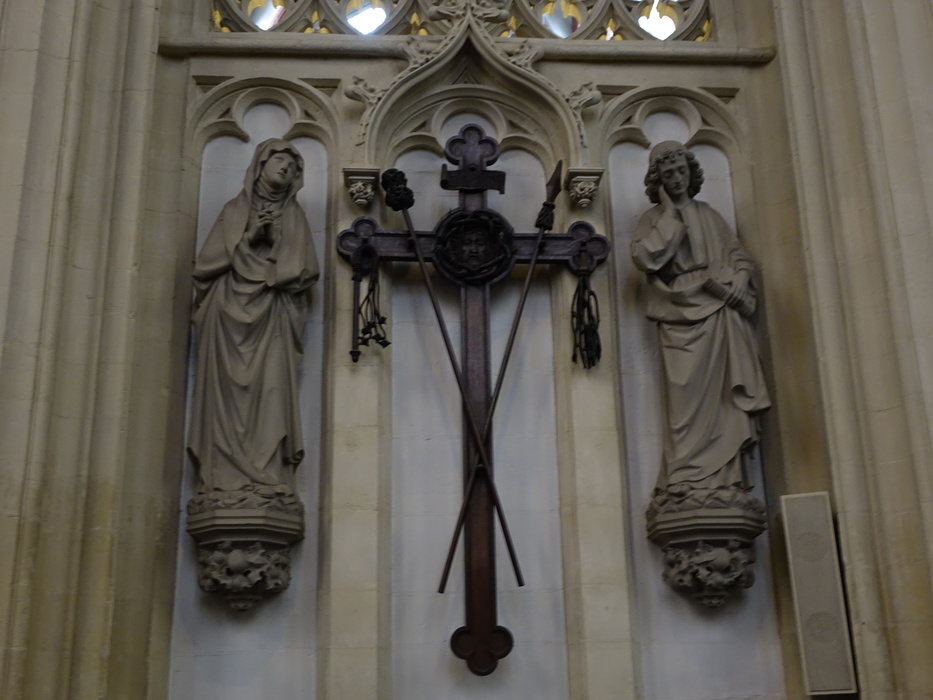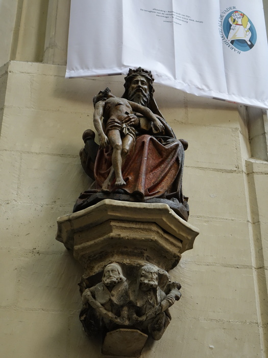 Внутри собора обращает на себя внимание небольшое скульптурное изображение Бога-отца, держащего на руках своего мертвого распятого сына,