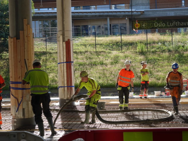 Рабочие делают платформу для аэроэкспресса. Железобетон.