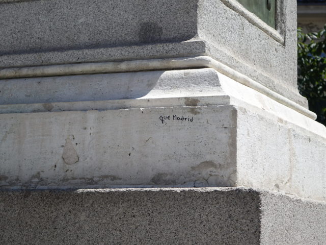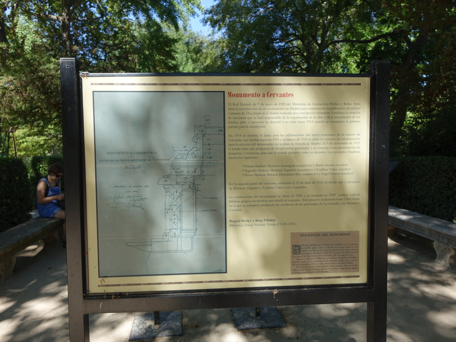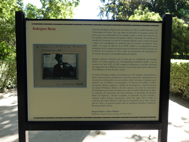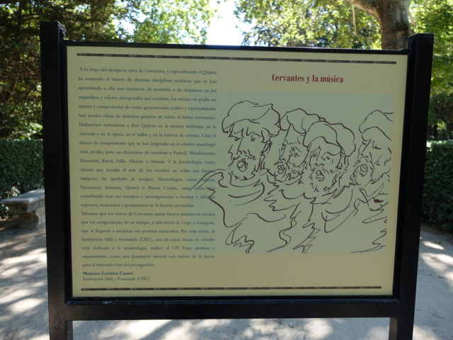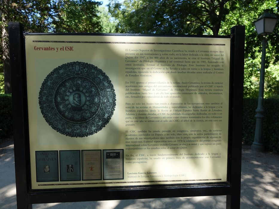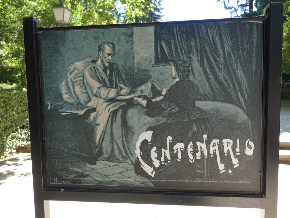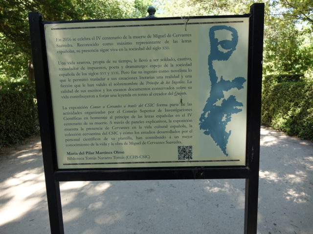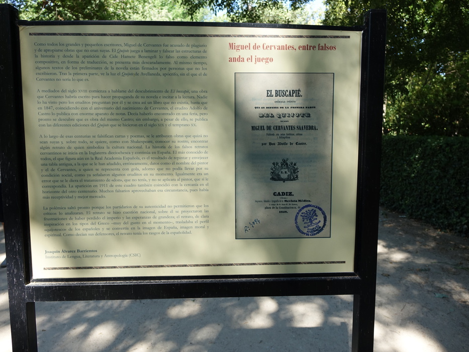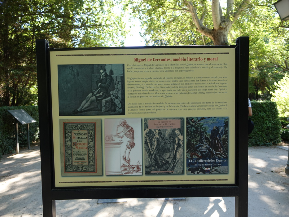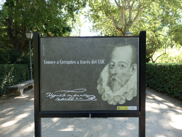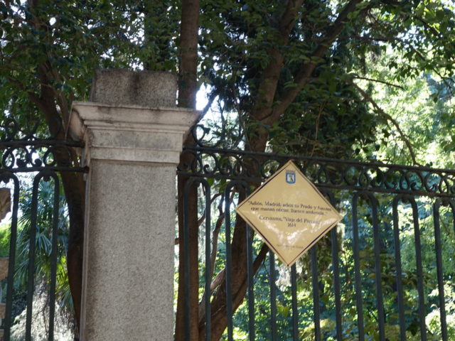 «Прощай, Мадрид, и ты прощай, о Прадо, и нищий кров, приют мой с юных дней» — цитата из «Путешествия на Парнас» Сервантеса на ограде ботанического сада, недалеко от Прадо.