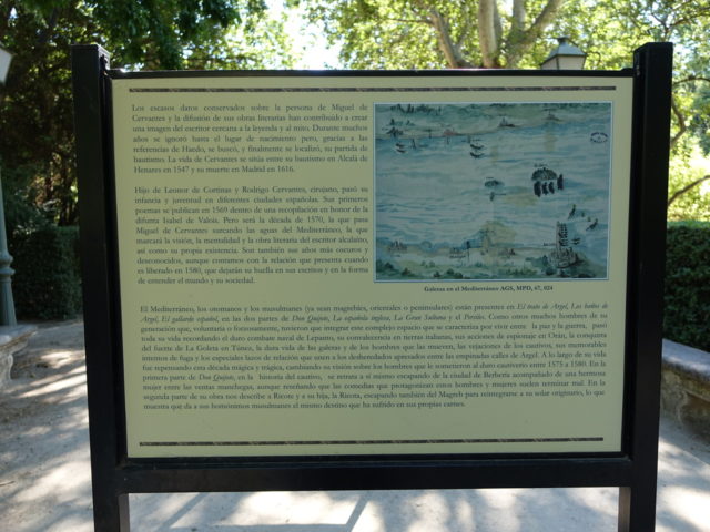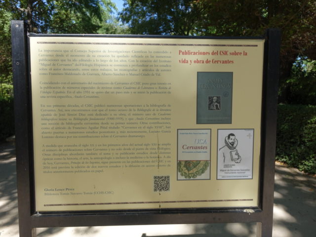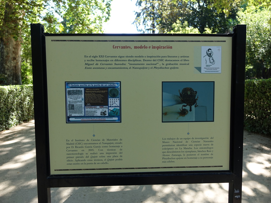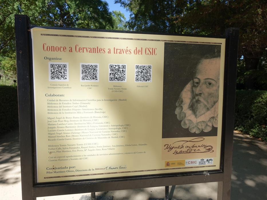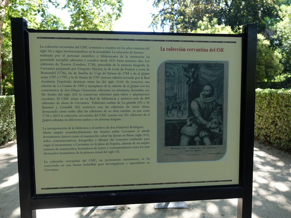 Стенды, посвященные Сервантесу, в ботаническом саду: