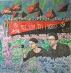 Он создает крошечные рисунки и огромные картины, в которых утверждает анархо-символику, раскрашивает черную хронику (см. текст о выставке Во время войны) и транспаранты для современных леворадикальных демонстраций. Картины Давида Чичкана — что-то вроде кафедрального собора наизнанку — монументальная книга про свободу для тех, кто пока не умеет читать; книга, страницы которой расклеены в пространстве города и галерей. Моя идеальная картина мира отличается от того, что рисует Чичкан, но это проблемы тонкой шлифовки, которые вообще не будут интересны многоуважаемому читателю. Работы, взятые со страницы художника и найденные в интернете:
