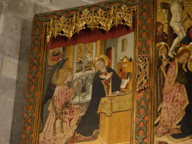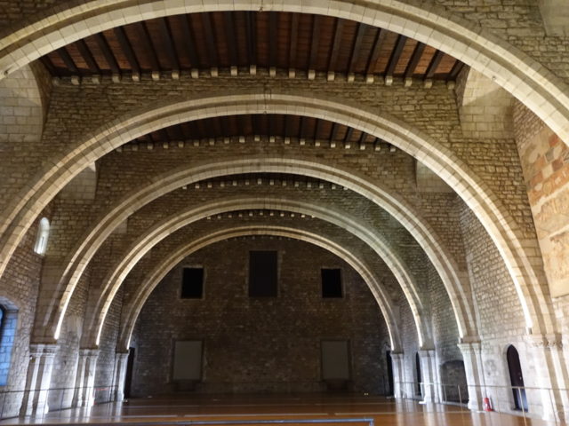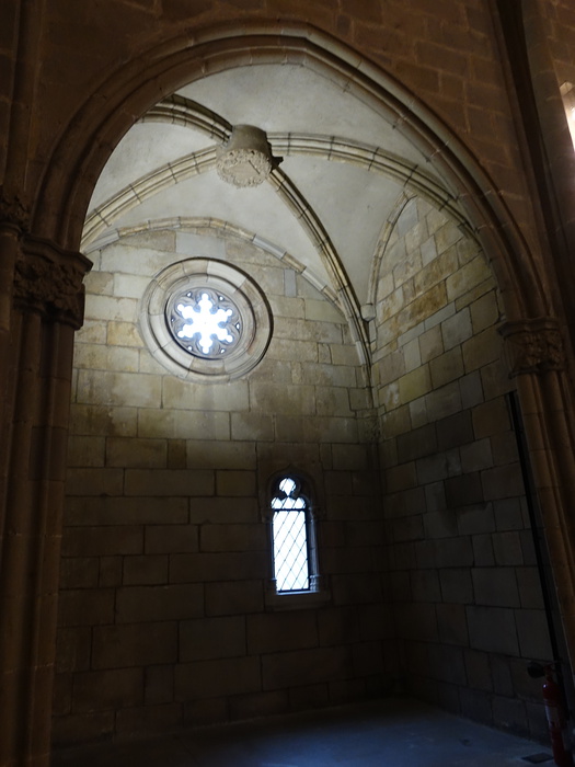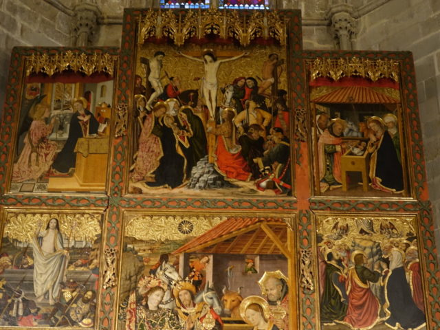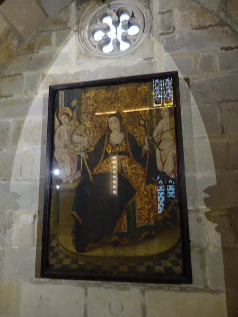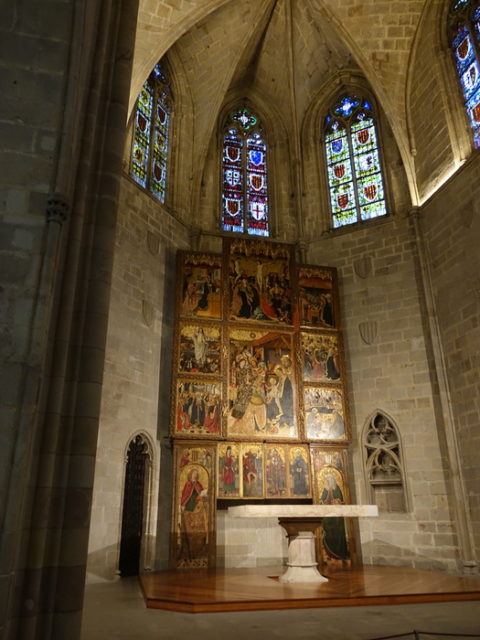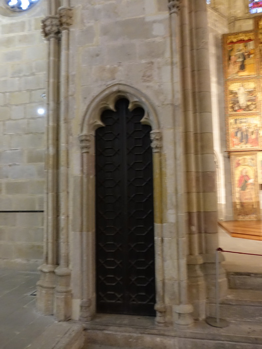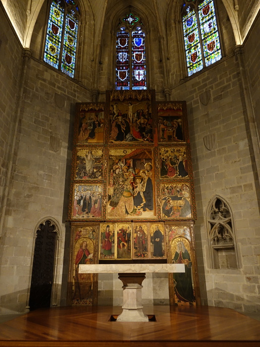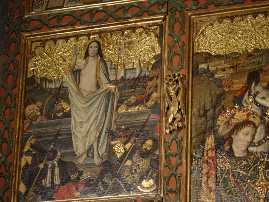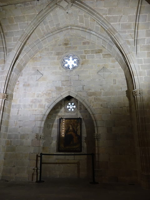 В этом же музее, но на поверхности земли, располагается еще один важнейший для всего человечества зал, Тинель. Здесь Колумб говорил с Изабеллой Кастильской и Фердинандом Арагонским. В дворцовой церкви — средневековый алтарь 15 века и витражи-леденцы: