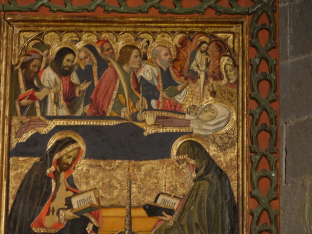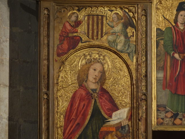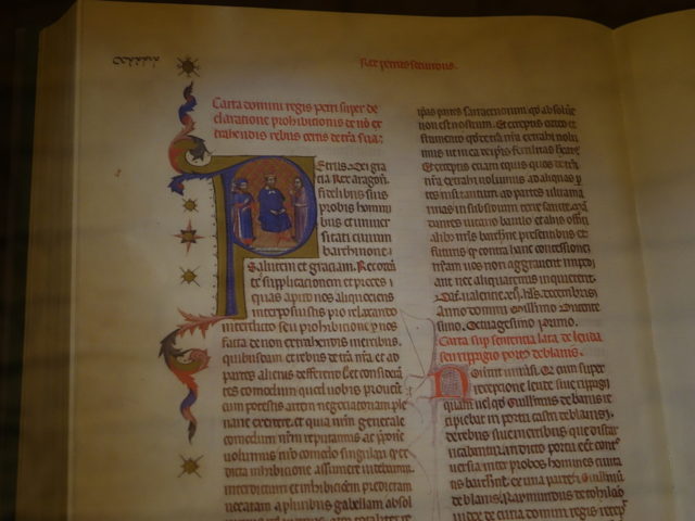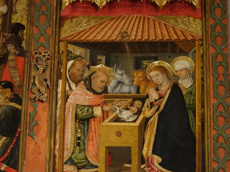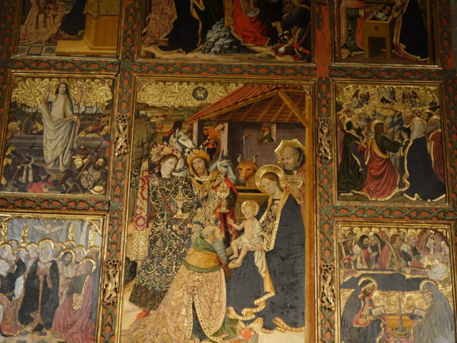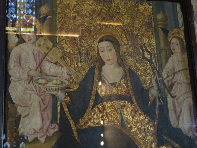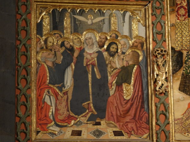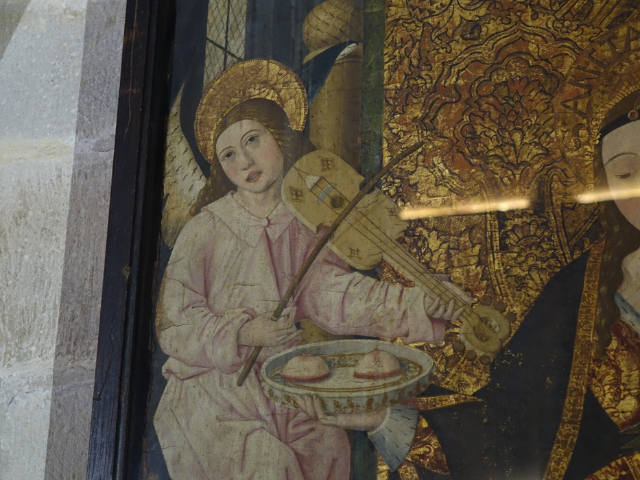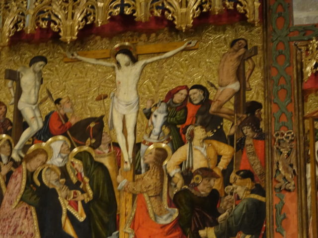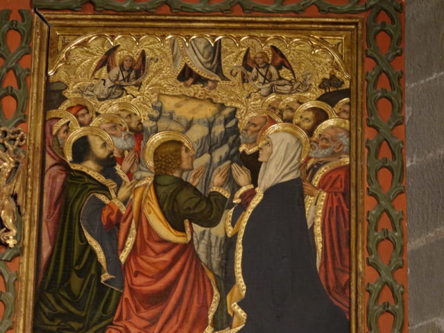 В этом же музее, но на поверхности земли, располагается еще один важнейший для всего человечества зал, Тинель. Здесь Колумб говорил с Изабеллой Кастильской и Фердинандом Арагонским. В дворцовой церкви — средневековый алтарь 15 века и витражи-леденцы: