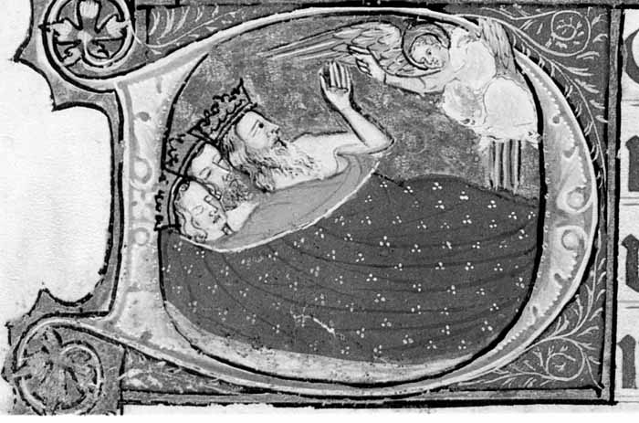 Админ группы Страдающее средневековье считает, что это ангел будит волхвов. Похожая сцена из Stundenbuc: