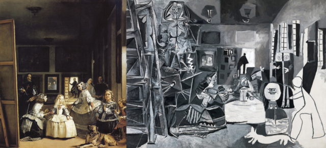 Второй этаж довольно неприятного готического дворца Беренгера д’Агилара был занят под экспозицию. Были представлены в большом количестве ученические работы Пикассо, в том числе безжизненные академические портреты, написанные в возрасте св.Евлалии — в 13 лет. Русскоязычный аудиогид (без наушников) относительно прилично рассказывал о влиянии отца-художника, о попытках участия в выставках с работами на банальные темы, о путешествиях и поисках стиля. Следующие залы состояли из работ подражательных — подражательных всему Парижу. Переосмысление «Менин» Веласкеса растянулось на несколько залов.