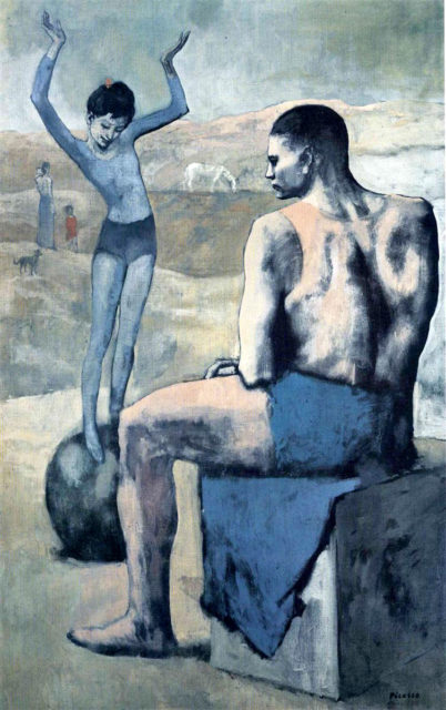 Лена Грунтова также предлагает сравнить La donselle virtuosa с еще одной картиной, на которой изображена балансирующая женщина — «Девочкой на шаре» Пикассо.