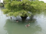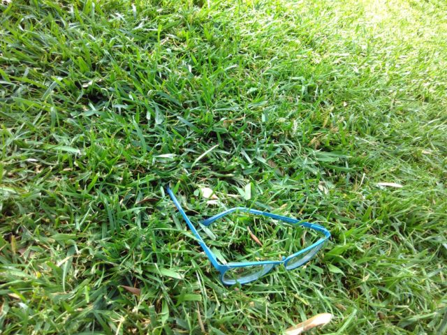 Было так жарко, что мы уснули на газоне около Триумфальной Арки и на нас напали зелёные попугаи. Здесь, на фотографии, они сидят в траве с украденным пирожком.