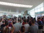 Активисты начали перемещаться по аэропорту и в течение часа создавали препятствия на первом и втором этаже терминала, устраивали митинги с громкоговорителем и останавливали эскалаторы.