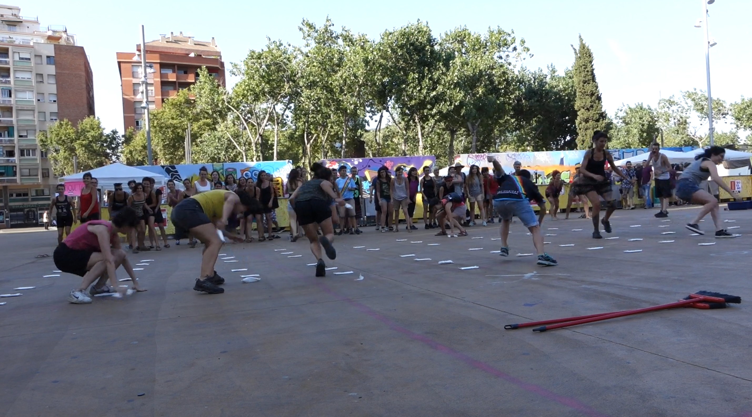 С 18.15 до 20.00 17 июля 2017 года, в воскресенье, в парке de les Tres Xemeneies проходило одно из мероприятий фестиваля барселонского района Побле Сек Festes Populars del Poble Sec — первая феминистская Олимпиада.