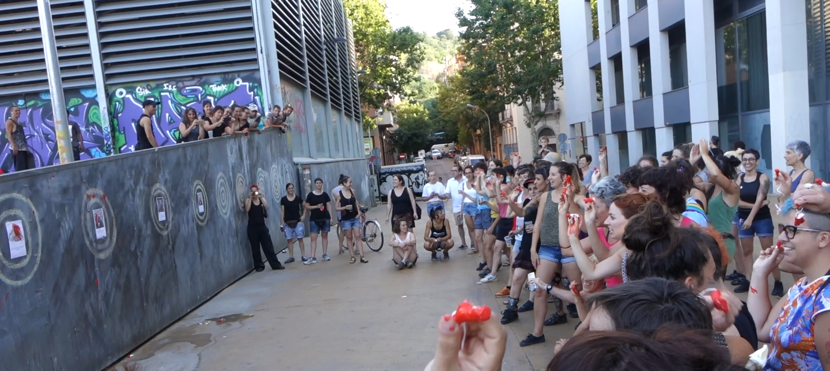 Следующее состязание называлось Tir al tampó. Три портрета мачистов, оправдывающих насилие над женщинами, были помещены в центр мишеней — вместе со своими высказываниями.