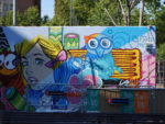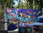 Все стены и заборы вокруг были расписаны граффити, в основном художественными. Один художник работал во время фестиваля. Здесь только две стены, но на общих фото вы можете видеть, что свободных площадей для граффити не так уж много.
