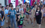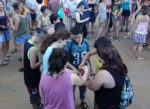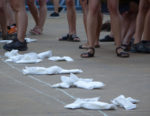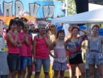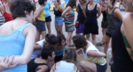 Организаторы объяснили правила Relleus de compreses. Команды соревновались в том, кто скорее соберет прокладки, уворачиваясь от водяных пистолетов.