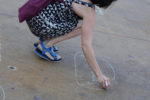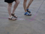 Организаторы отмечали мелками на асфальте место падения и писали рядом название команды.