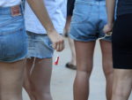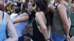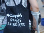 На этой фотографии есть интересный объект — рюкзак с надписью «Самозащита». Феминистские группы самообороны здесь распространены.