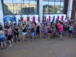Команды выстроились в линию и каждая «представилась». Представления команд я не включены в ролик про олимпиаду — они заняли много времени и не так интересны. Все участники команды или кричали или прыгали одновременно.