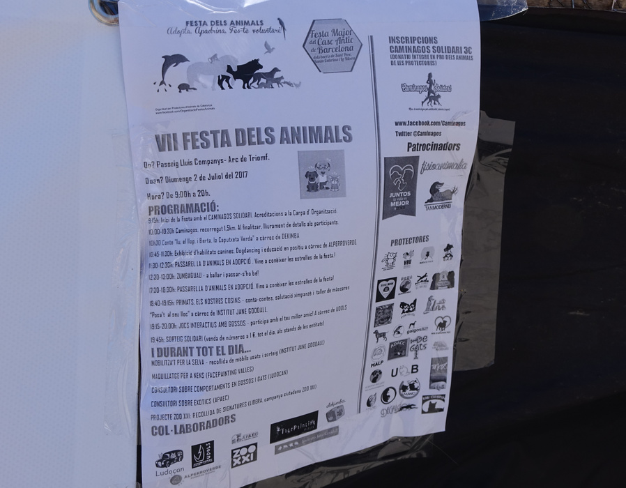 2 июля 2017 года около Триумфальной арки прошел фестиваль любителей животных, организованный DeGats и Organització Festes dels Animals. На бульваре были установлены палатки, где продавались товары для животных или с изображениями животных, призывали усыновить кошку или собаку, собирали деньги для многочисленных зоо-сообществ. Под самой аркой установили сцену для концертов и речей, а рядом со сценой расположились сборщики подписей «Зоопарка 21 века» и спасателей приматов. Последние также собирали старые мобильники для переработки.