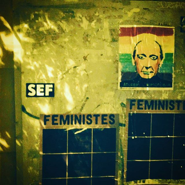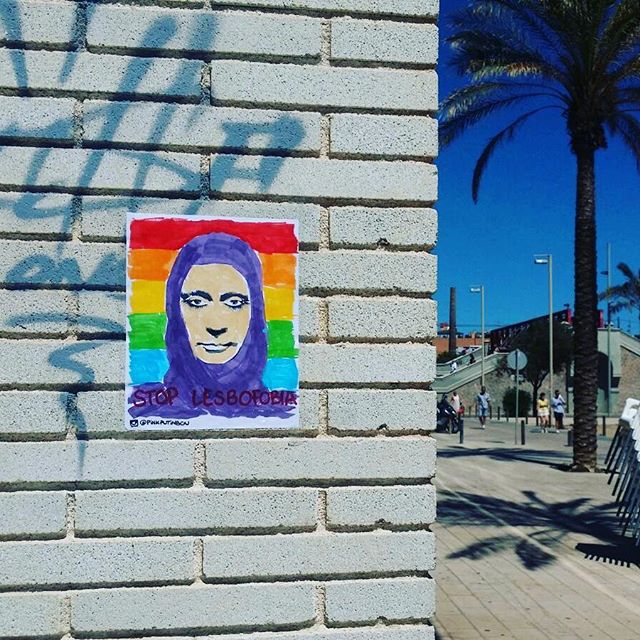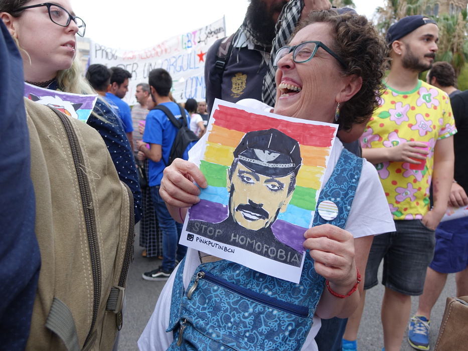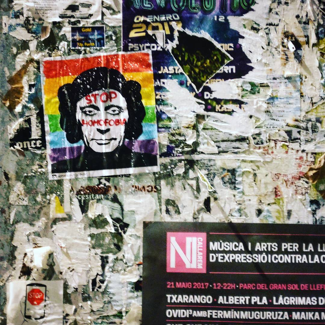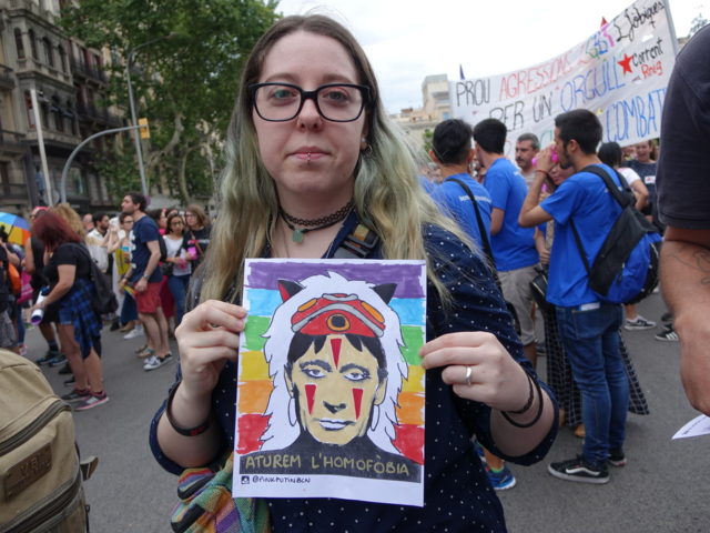На барселонской юбилейной 40-й лгбт демонстрации 1 июля 2017 года я видела пачку уже готовых картинок, которые люди охотно покупали и использовали в виде плакатов.