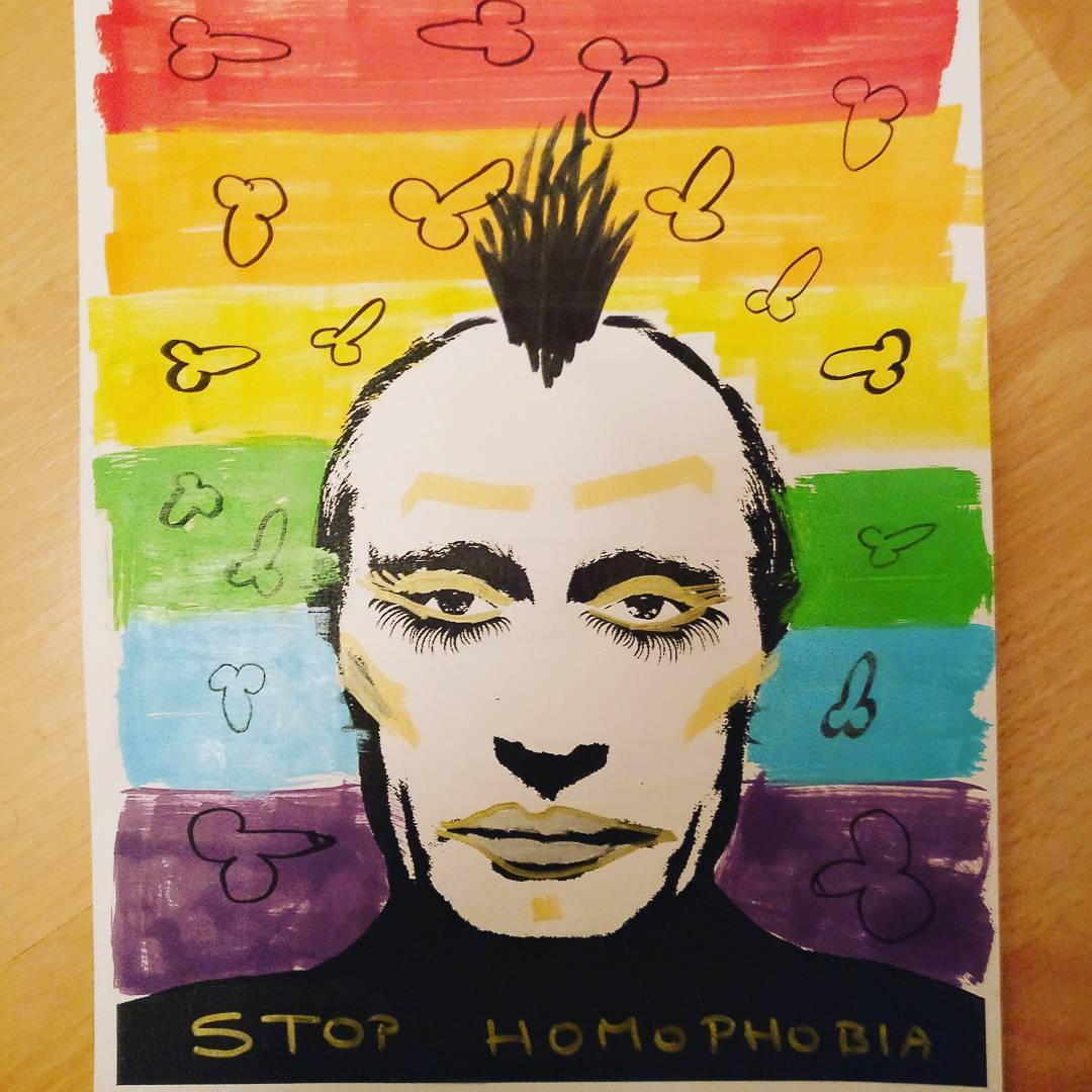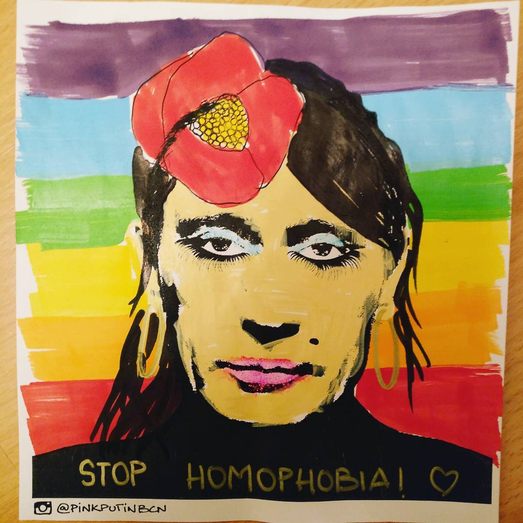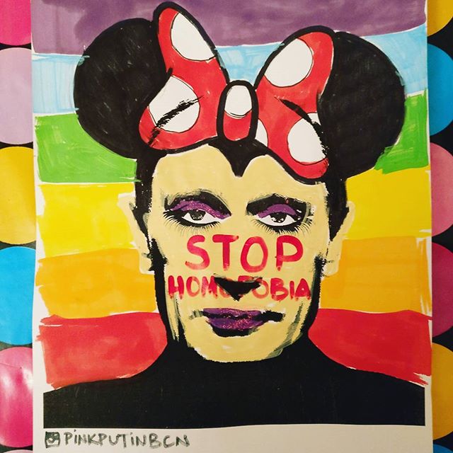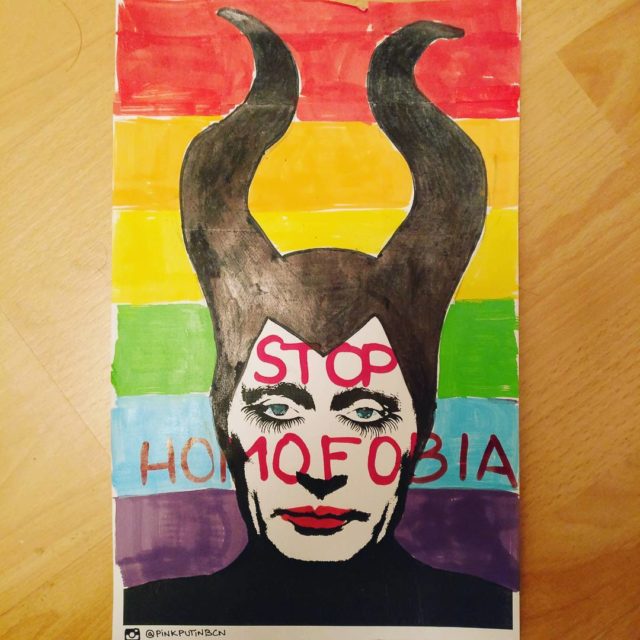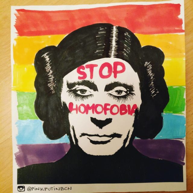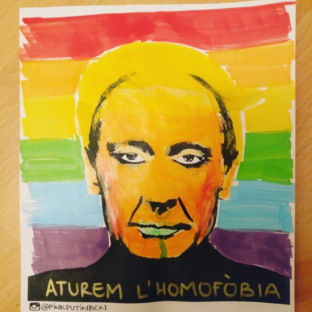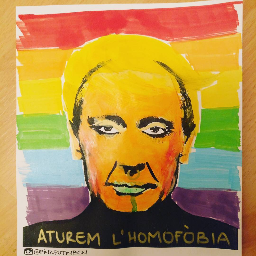 В Барселоне есть антигомофобный проект Pink Putin @pinkputinbcn . Активистки призывают людей скачивать из сети картинку с диктатором