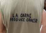 - Когда ты ешь мясо, ты ешь боль, травму, ужас, стресс, убийство, кровь беззащитных животных, прекратите!