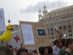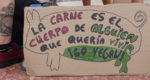 Веганфеминистки также шли отдельно, с несколькими большими транспарантами и множеством плакатов.