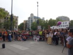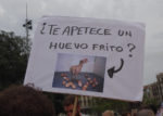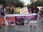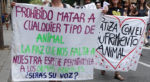 Во время митинга трижды зачитывали манифест против скотобоен на каталонском и английском языках.