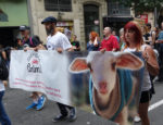 Французские зоозащитники шли отдельной группой в десять человек, у них были красные футболки про скотоводство и транспарант:
