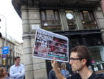 Шествие прошло мимо гомомонумента. Современные концлагеря для животных построены по образу и подобию концлагерей нацистов и коммунистов, которые уничтожали миллионы людей из-за ксенофобии. Сейчас из-за ксенофобии убивают миллионы животных.