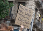 Мать с новорожденным младенцем прикрепила плакат, словно пейнету, к прическе, шла рядом с мегафоном, скандировала вместе со всеми. Малыш спокойно спал.