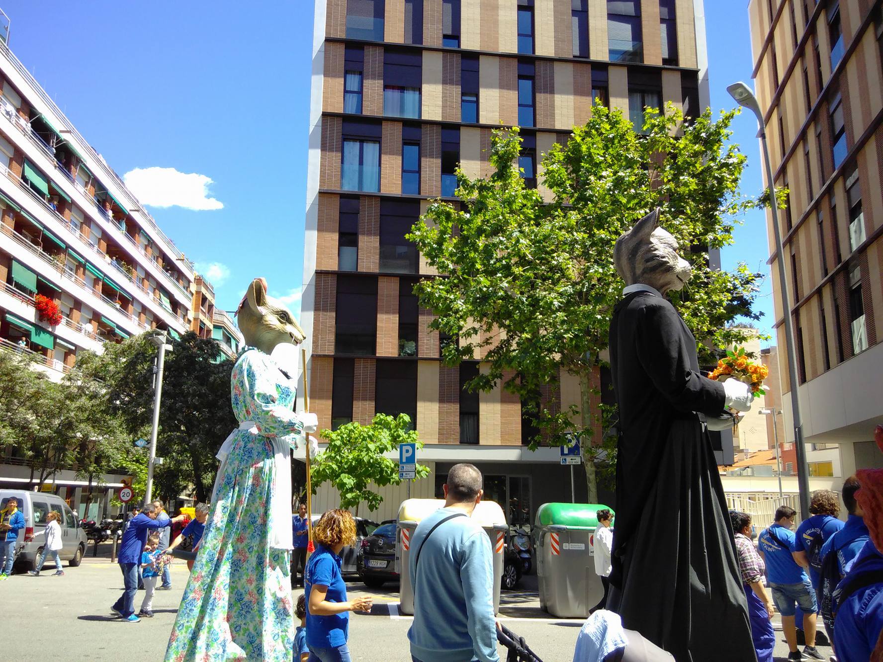 Среди участников шествия были Gegants de Calonge это Valentina (мышь), Marti (кот), Menut (свинья), Kiriki (петух), Murri (осёл), Liu (селезень), Pelut (собака).