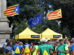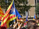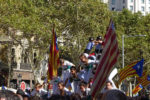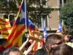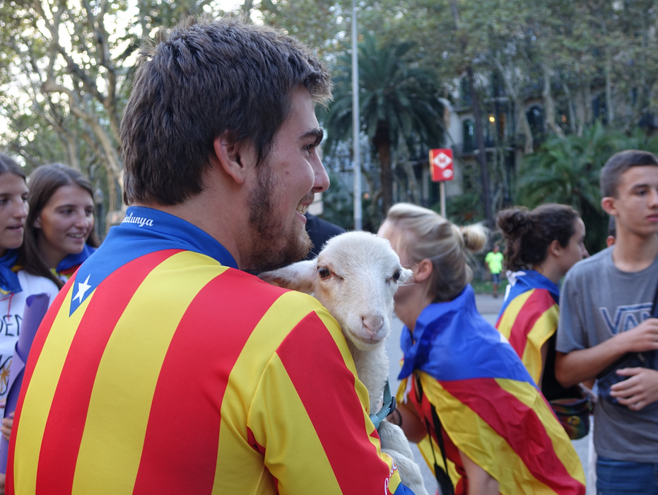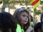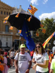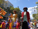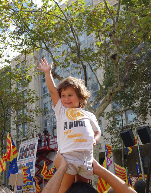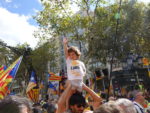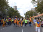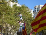 Я была на пересечении Passeig de Gracia и Consell de Cent. Через каждые 50 метров на Passeig de Gracia располагались коллы кастельеров. Героем дня был маленький ребенок, который стоял на плечах отца, подняв ручку так, как это делают малыши на верхушках кастелей и поднимал флаги.