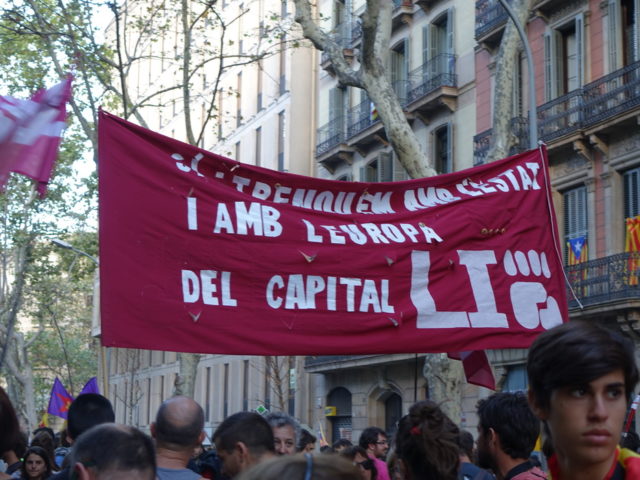 Я решила дойти до Триумфальной арки и наконец-то обнаружила колонну радикальных левых. Лозунги за Каталанские страны звучали и были некоторые плакаты-флаги, но по сравнению с синими и красными эстеладами, их число было незначительным.