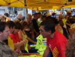 Мы были на площади Каталонии и на бульваре Грасия во время вечерней демонстрации. Был запланирован флешмоб: в 17.14 — символическое время, год утраты независимости, все люди, стоящие на перекрестке Passeig de Gràcia и calle Aragó должны были одеть желтые футболки, чтобы получился гигантский «плюс», то есть плюс в бюллетене на референдуме о независимости Каталонии 1 октября.