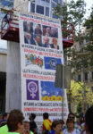 На демонстрации было много социальных транспарантов, плакатов, стикеров: