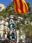 Рядом я видела шесть разных команд кастельеров, самой удачливой была команда в зелёных рубашках, Вилафранка (из Vilafranca del Penedès). Началось с детских башен, закончилось семи-уровневыми, двойными, широкими. На вершинах разворачивали эстелады и толпа встречала это скандированием национальных лозунгов.