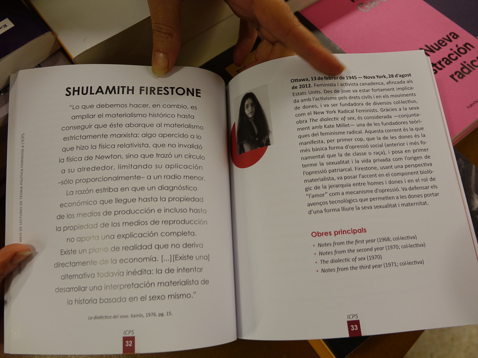 После выставки я зашла в находящийся радом магазин женской литературы Proleg и там увидела каталог не-для-продажи. Эта книга была создана для проходящего сейчас цикла феминистских лекций Автономного университета Барселоны.