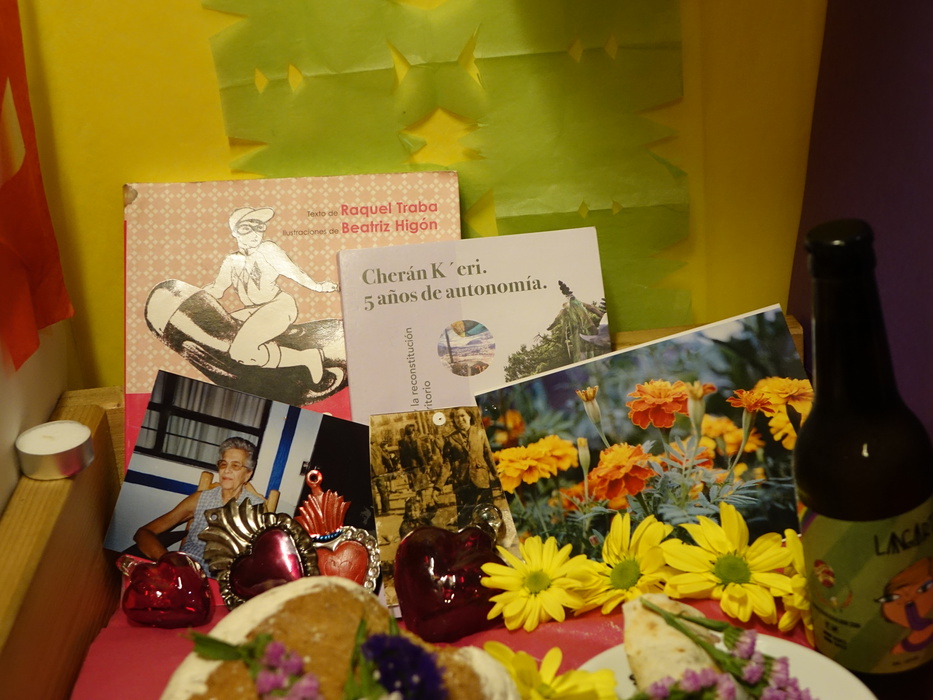 «Vivas nos queremos, ni una menos» — «Мы хотим жить, ни одной (женщиной) меньше» было написано на алтаре мертвецов, созданном в последнюю осеннюю ночь, 31 октября 2017 года, в веган-феминистском барселонском кафе La Raposa. На алтаре были и традиционные сахарные головы, черепа, скелеты, цветы и фрукты. Но, конечно, была и определенная специфика. Череп был украшен тайскими шариками, рядом лежали розовый вибратор и феминистский журнал Pikara.