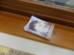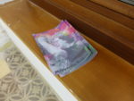 В этой фотоработе использована гостия. Художница говорит о значении женской природы и проводит параллели с христианским причастием. В средние века осквернение гостии заканчивалось смертным приговором.