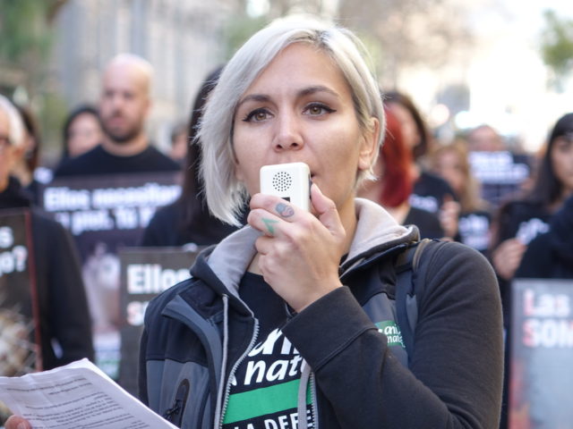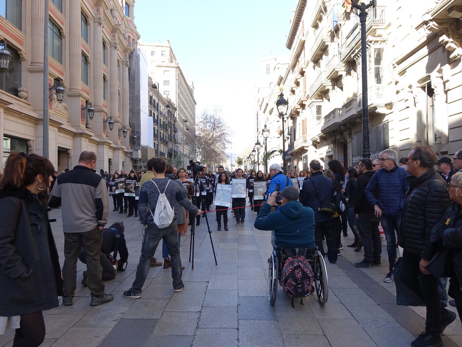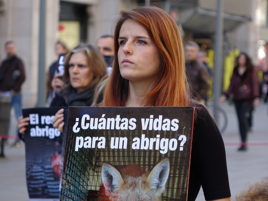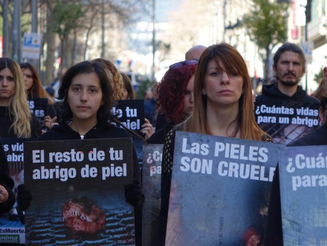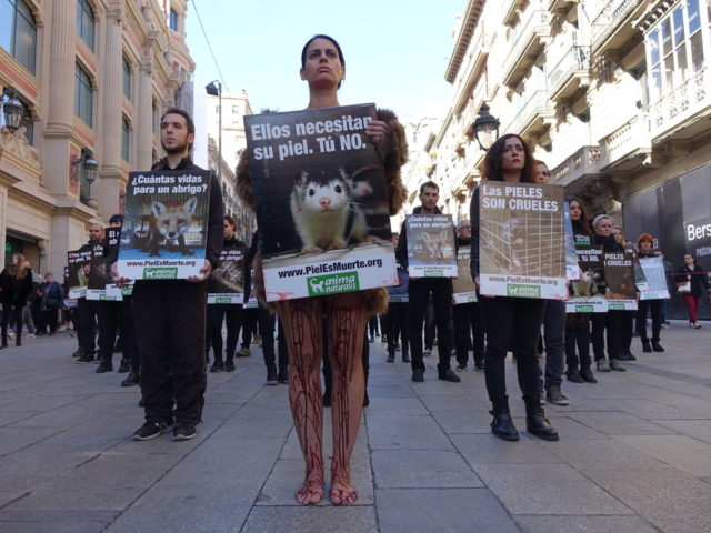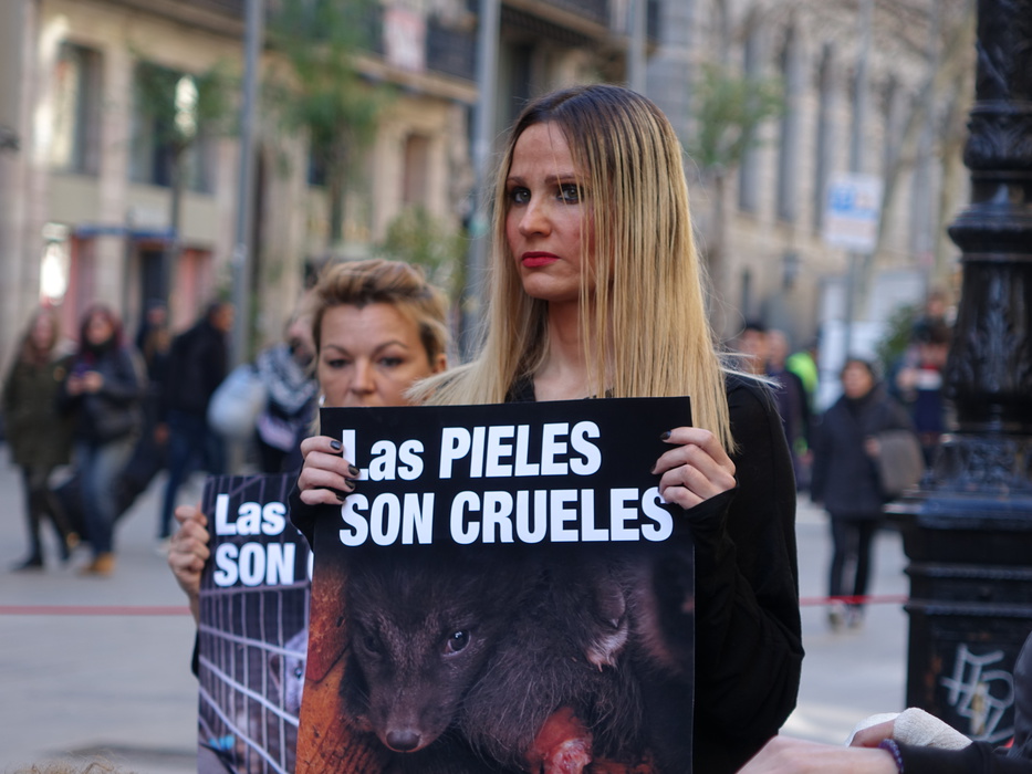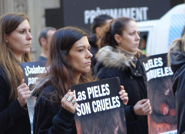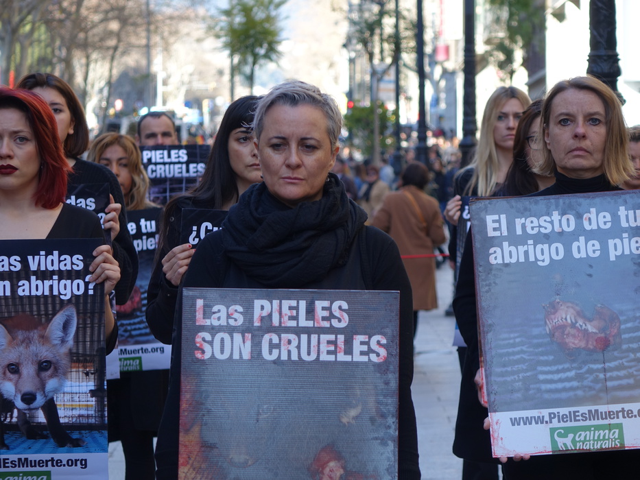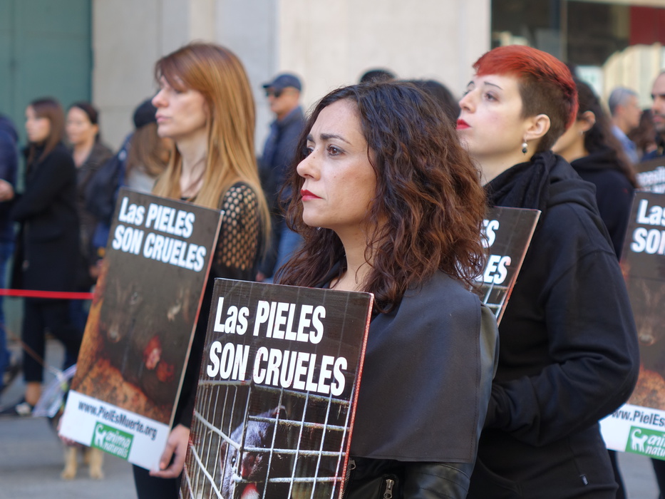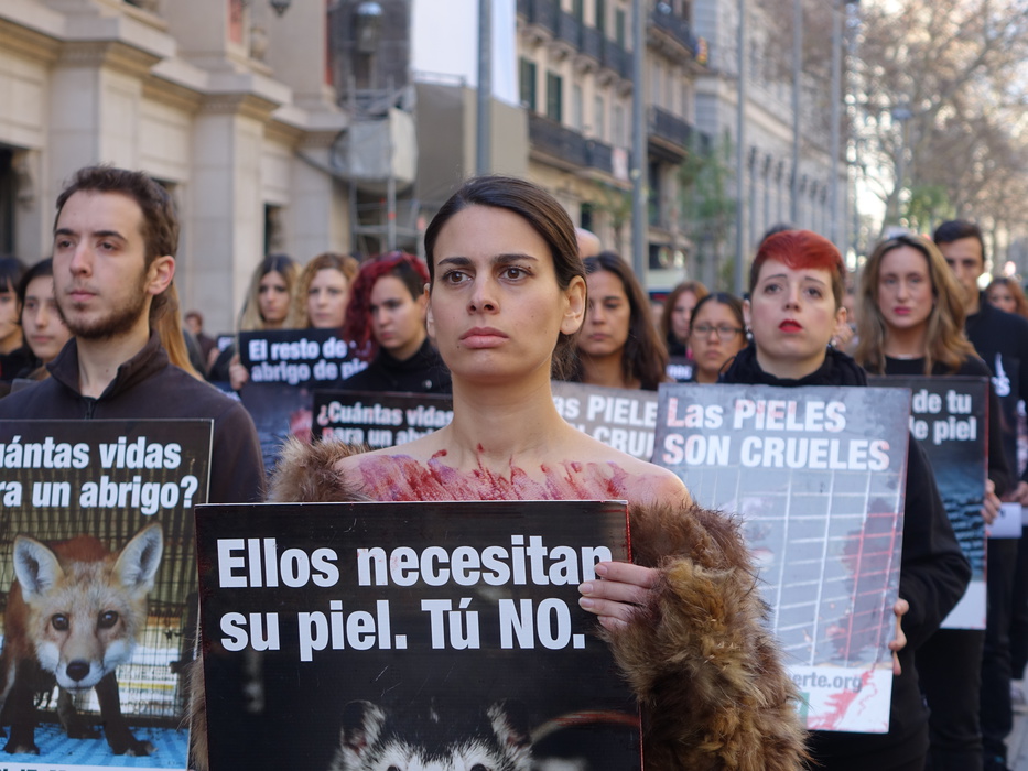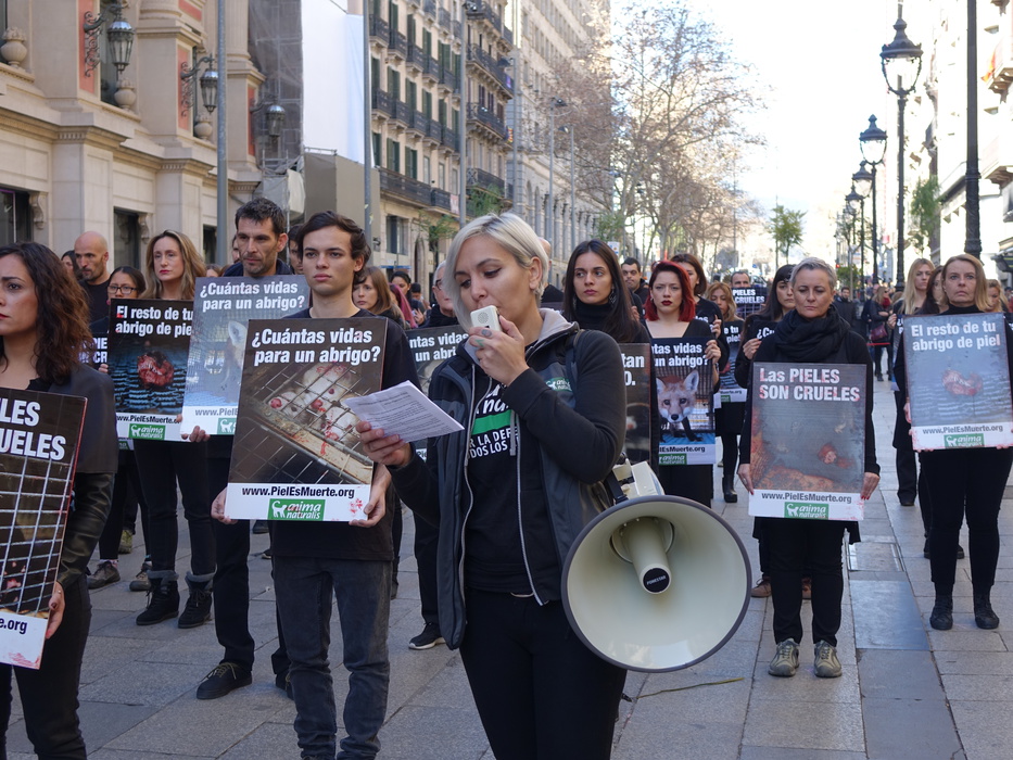 20 января 2018 года полсотни человек в черной одежде из AnimaNaturalis España (и параллельно из многих мелких групп зоозащитников) выстроились клином на важнейшей торговой улице Барселоны, Avinguda del Portal de l’Àngel — около магазинов H&M, Bershka, El Corte Inglés. Магазины эти, конечно, торгуют мехом и другими частями тел мёртвых животных — шелком, пером, шерстью, кожей.