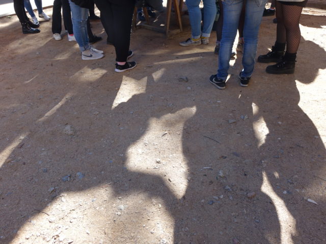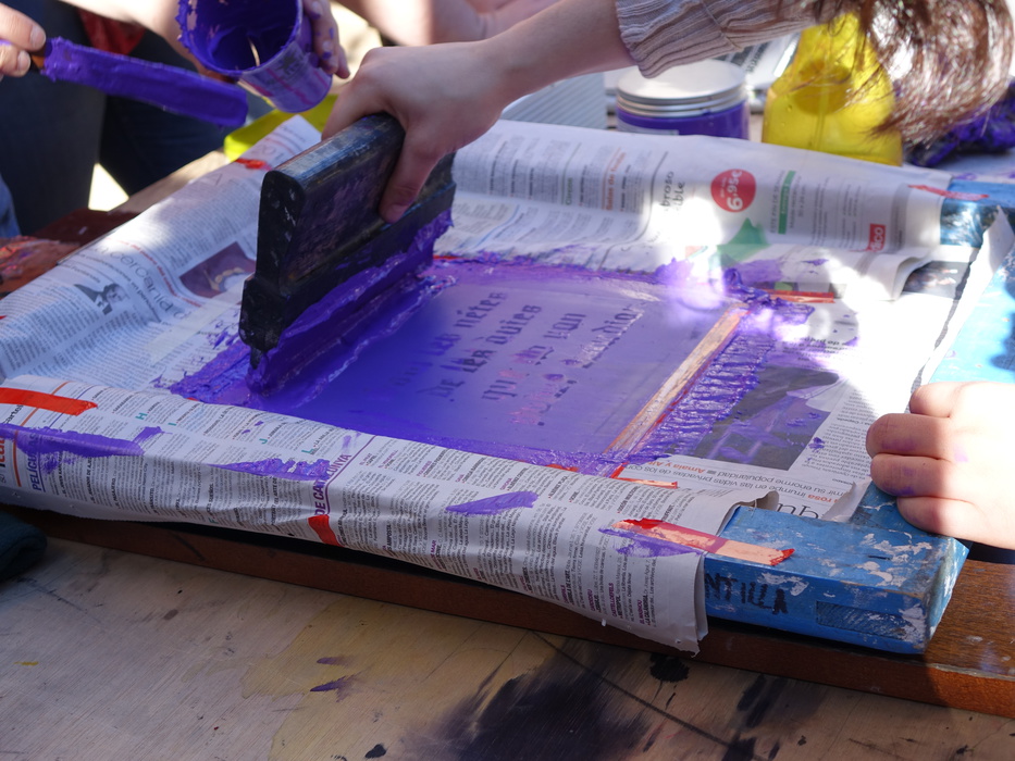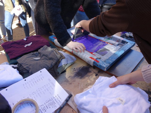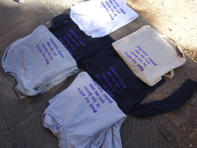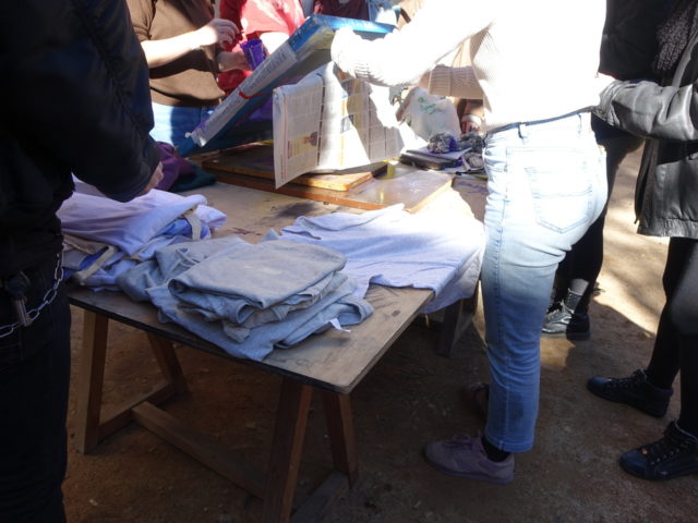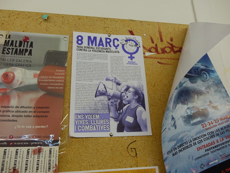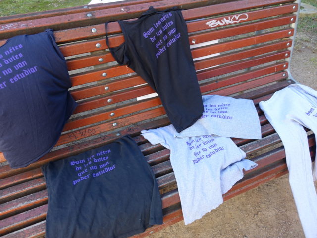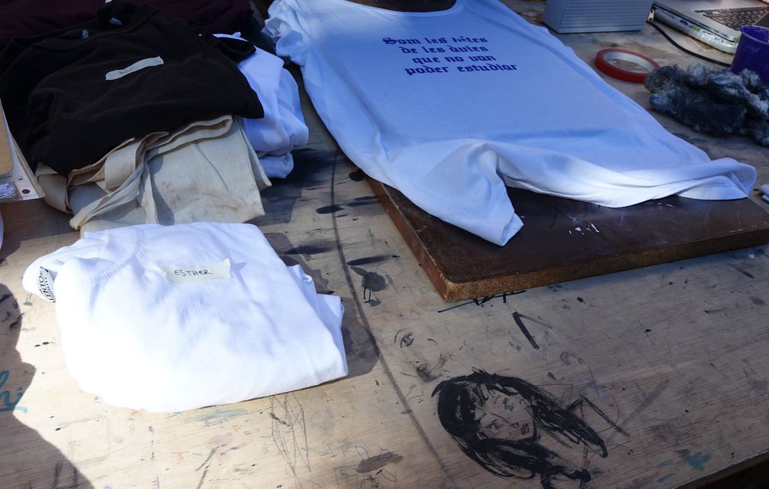 6 марта 2018 года студентки из феминистской группы Школы изящных искусств Col·lectiu feminista BBAA организовали во дворе своего учебного заведения (Pau Gargallo, 4) мастерскую для печати на футболках. Они вынесли стол, приготовили гору газет и рамку с сетчатым трафаретом для сериграфии и с 14 до 17 часов печатали помощи фиолетовой и белой краски «Мы внучки бабушек, которые не имели возможности учиться». Диждей занималась развлекательной частью мероприятия, на столе стояла банка для пожертвований. Студентки приносили свои футболки и сумки — преимущественно это были вещи, уже находящиеся в использовании, не новые. Было напечатано около ста надписей. Готовые изделия сушили, раскладывая на лавках и на земле. В майке, которую мы тогда сделали, я и ходила на демонстрацию 8 марта.