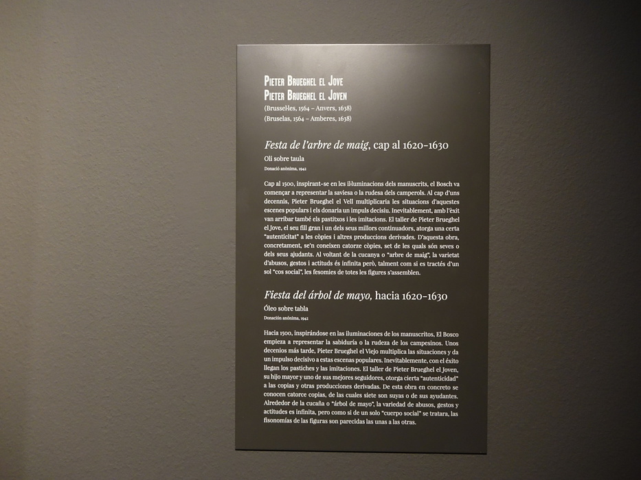 В выставочном зале СaixaForum в Жироне с 15 февраля по 19 августа 2018 года проходит бесплатная выставка фламандской и голландской живописи 16-17 веков из Musées d’Art et d’Histoire de Genève. Привезли Корнелиса Гарлемского, Яна Брейгеля Старшего, Питера Брейгеля младшего («Майское дерево»), Филипса Вауэрмана, Николаса Маса, Яна ван Гойена, Давида Тенирса, Яна Веникса, Яна Антонисзона ван Равестейна («Portrait of Pieter van Veen, his son Cornelis and his clerk Herndrick Borsman, ca. 1620. «) и других, всего 48 работ художников-мужчин.