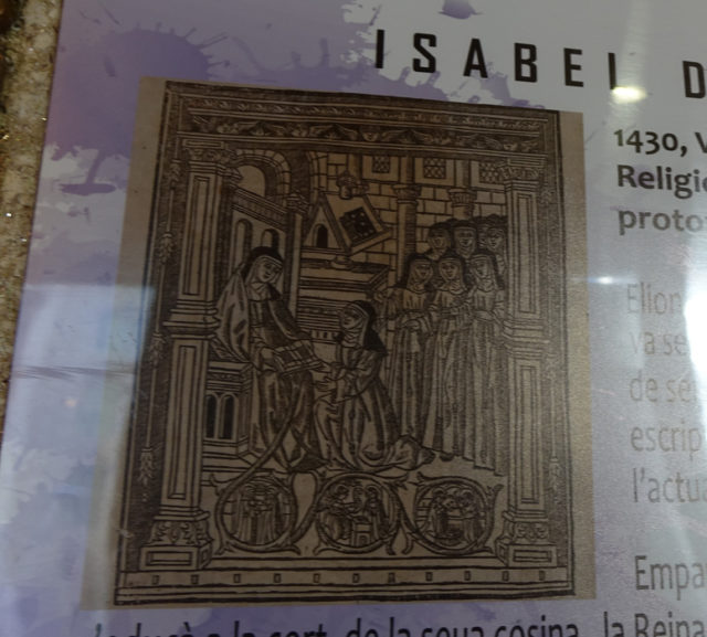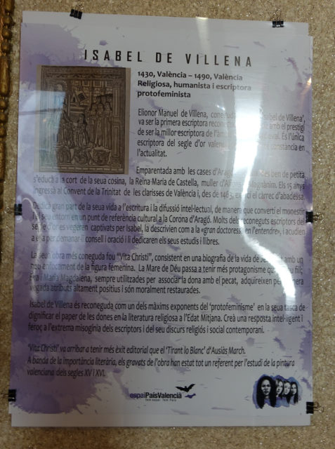 Isabel de Villena (1430-1490) — поэт, первая валенсийская писательница, монахиня, аббатиса, воспитанная при королевском дворе. Написала книгу Vita Christi, которая, в частности, рассказывала о женщинах, окружавших Христа. В этой книге она опровергла многие женоненавистнические тезисы, господствовавшие в то время во владениях Арагонской короны. При Франко одну из школ Esplugues de Llobregat, назвали в честь Изабель. Сейчас в Испании есть много топонимов, связанных с de Villena.